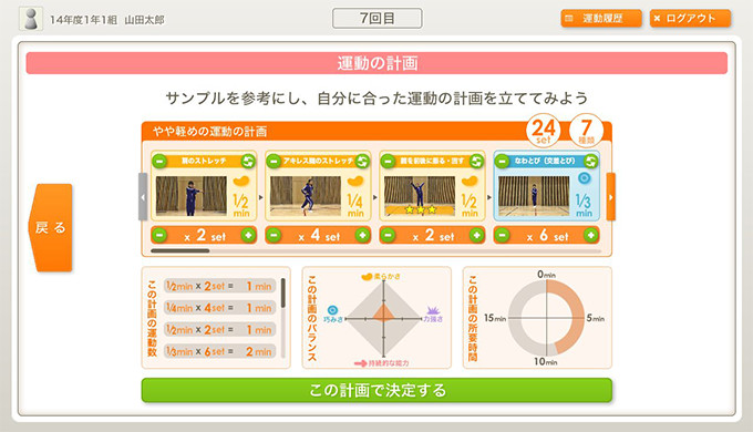 運動、態度、知識、思考・判断の単元計画に基づき、運動計画の基礎を学べます